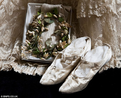 ไม่ใช่แค่รองเท้าเท่านั้นที่มีไซส์เล็กจิ๋วขนาดนี้ ชุดเจ้าสาวเองก็เป็นไซส์ที่เล็กเกินไปสำหรับสาว ๆ ในหุ่นสเลนเดอร์ในสมัยนี้ด้วยเช่นเดียวกัน โดยครอบครัวของคุณย่าบอกว่า คุณย่าอลิซาเบธเป็นคนตัวเล็กและผอมบาง สูงแค่ 152 เซนติเมตรเท่านั้นเอง ชุดเจ้าสาวของคุณย่าเมื่อนำมาเทียบกับเสื้อผ้าปัจจุบันแล้วยังเล็กกว่าไซส์ 4 ด้วยซ้ำ ขนาดตอนที่ อลิซาเบธ หลานของคุณย่าได้นำมันออกมาลองใส่ตอนที่เธอน้ำหนักแค่ 41 กิโลกรัม เผื่อว่าอาจจะได้ใช้เป็นชุดเจ้าสาวในวันของตัวเองบ้าง ก็ยังใส่ไม่เข้าด้วยซ้ำ จึงน่าจะกล่าวได้ว่า คุณย่าเอเธลเป็นทั้งคนแรกและคนสุดท้ายที่ได้สวมใส่มัน และจากรายละเอียดที่ประณีตชดช้อยของชุดเจ้าสาวชุดนี้ จึงพออนุมานได้ว่าครอบครัวของคุณย่าน่าจะมีฐานะร่ำรวยไม่น้อยเลยทีเดียว