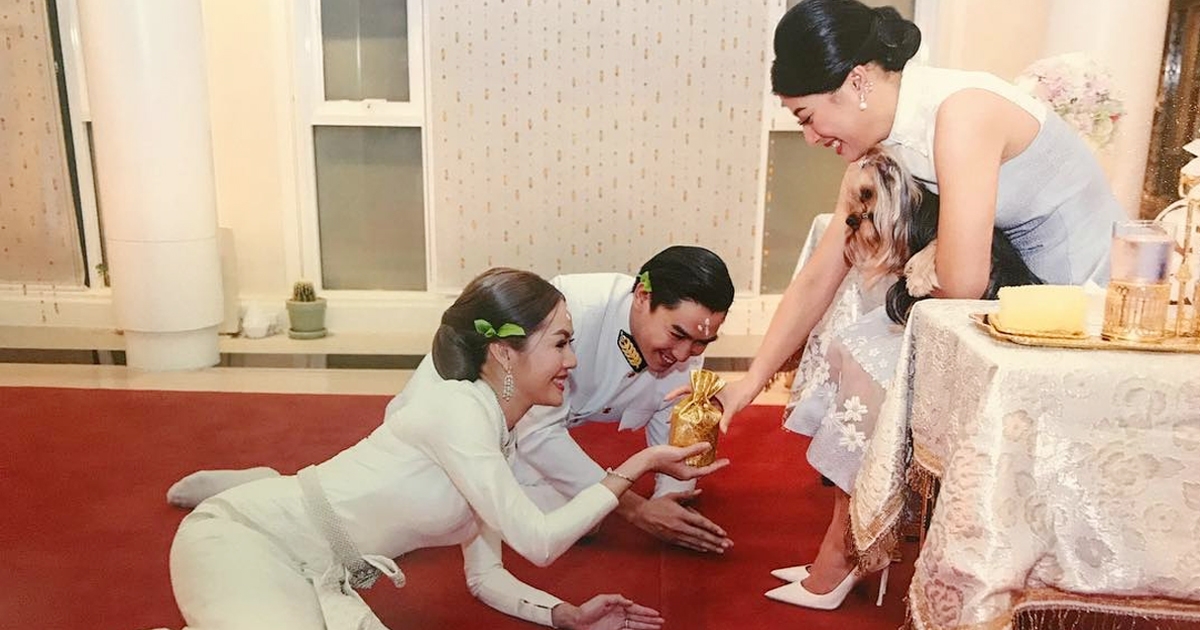 งานหมั้น เป๊ก เปรมณัช - นิว นภัสสร พระองค์หญิงสิริวัณณวรีฯ ประทานน้ำสังข์