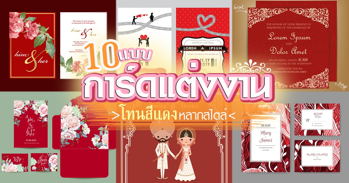 โดดเด่นสะดุดตา 10 แบบการ์ดแต่งงานโทนสีแดงหลากสไตล์