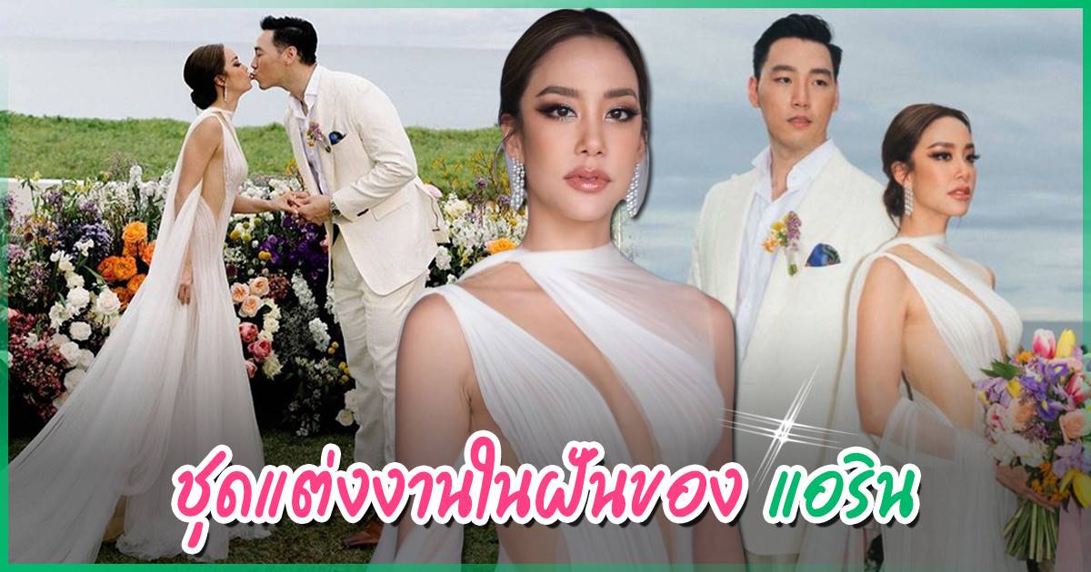 ซูมชุดแต่งงาน แอริน ยุกตะทัต ในงานแต่งงานกับ ไฮโซเบญ ยังคงคาแรกเตอร์ของสาวเปรี้ยวมั่นใจ กับดีเทลแหวกหน้าและแหวกข้าง ฉีกขนบชุดแต่งงานของสาวหวาน แอรินถึงกับบอกว่านี่คือ Dream dress