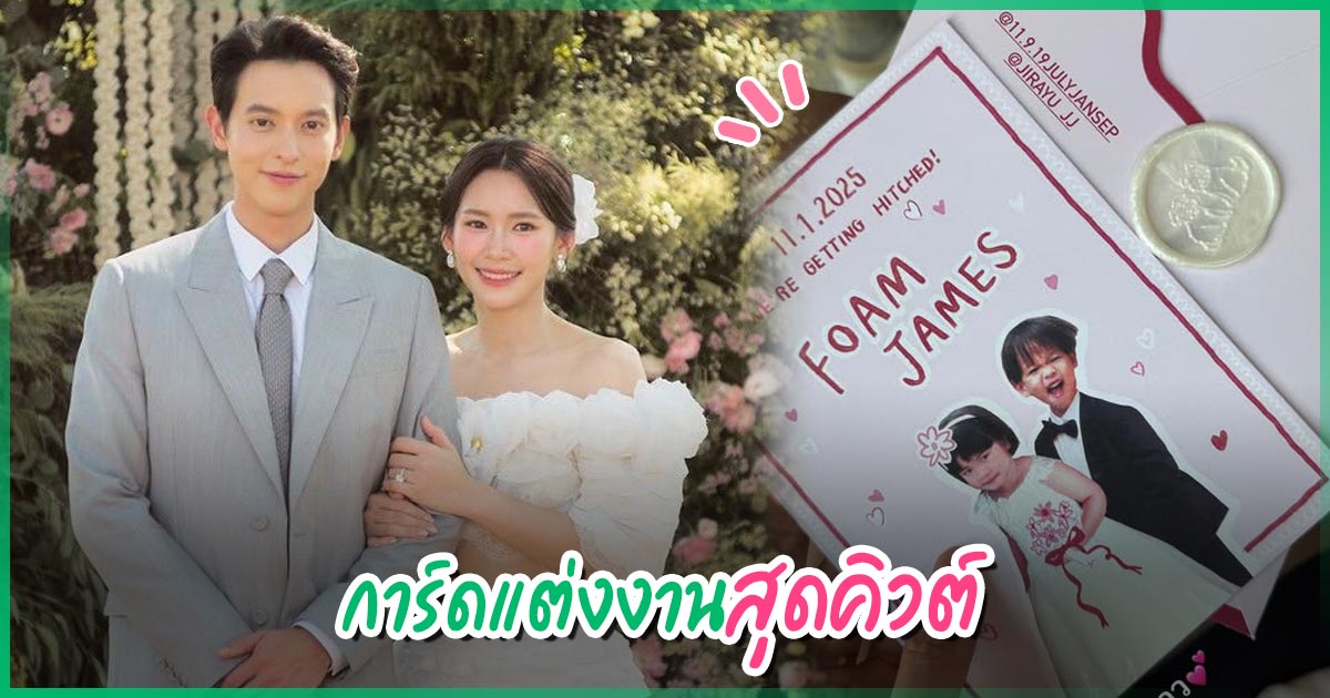 เจมส์ จิรายุ - โฟม เบญจมาศ ร่อนการ์ดงานแต่งงานเตรียมจัดงานฉลอง 11 ม.ค. นี้ ธีมสุดคิวต์จัดตรงวันเด็ก น่ารักน่าเอ็นดู แฟน ๆ บอกตรงคาแรกเตอร์บ่าวสาวมาก หลังพระเอกหนุ่ม เจมส์ จิรายุ ควงแฟนสาว โฟม เบญจมาศ เข้าพิธีแต่งงานอย่างเรียบง่ายไปเมื่อวันที่ 19 ธันวาคม 2567 ท่ามกลางบรรยากาศสุดชื่นมื่น มีคนในครอบครัว เพื่อนสนิท และผู้ใหญ่ในวงการ ไปร่วมงานนั้น ล่าสุด (7 มกราคม 2568) เจมส์ จิรายุ และ โฟม เบญจมาศ ก็ได้ร่อนการ์ดเชิญแขกคนสำคัญร่วมงานฉลองมงคลสมรสที่จะจัดขึ้นในวันที่ 11 มกราคม นี้แล้ว ซึ่งการ์ดงานแต่งงานของทั้งคู่ก็สมกับที่จัดตรงกับงานวันเด็กเลย เพราะได้ใช้รูปตอนเด็กของ เจมส์ และ โฟม ใส่ชุดเจ้าบ่าวและเจ้าสาว น่ารักน่าเอ็นดู โซคิวต์สุด ๆ โดยนางเอกสาว บัว นลินทิพย์ ได้ออกมาเผยภาพการ์ดงานแต่งงานของ เจมส์ และ โฟม พร้อมแคปชั่นว่า "โซคิวต์ ตรงธีมวันเด็กเลย" งานนี้ทำเอาแฟน ๆ ต่างบอกว่าการ์ดงานแต่งงานช่างตรงคาแรกเตอร์ของคู่บ่าวสาวที่มีความเฮฮา เป็นตัวของตัวเองกันสุด ๆ