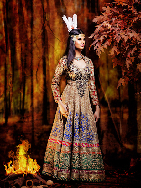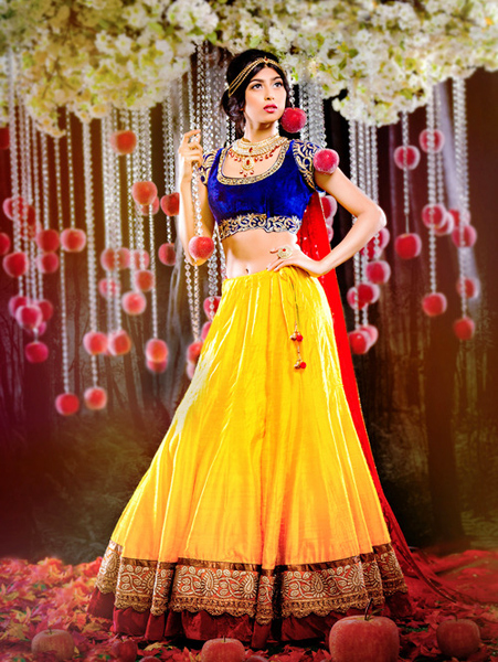 สำหรับชุดแต่งงานแบบเจ้าหญิงซินเดอเรร่าในคราบเจ้าสาวอินเดีย ก็มาพร้อมกับชุดสีขาวตามแบบฉบับของชุดแต่งงานที่สาว ๆ ทั้งโลกใฝ่ฝัน และดูพิเศษยิ่งกว่าเมื่อผู้ออกแบบเลือกตกแต่งชุดสีขาวด้วยดิ้นทอง ในขณะที่ด้านหลังก็ผูกด้วยผ้าสีขาวบางหางยาวพลิ้วไสว แถมยังดูสดใสด้วยชายกระโปรงที่ตัดสลับกับผ้าสีน้ำเงินอีกต่างหาก