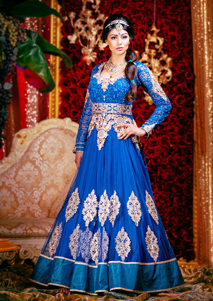 ชุดแต่งงานฉบับเจ้าหญิงจัสมินในชุดสีน้ำเงินประดับด้วยผ้าลูกไม้และเครื่องทองต่าง ๆ ให้ภาพลักษณ์ที่ใกล้เคียงกับเจ้าสาวอินเดียมากยิ่งขึ้น อีกทั้งยังเป็นชุดแต่งงานที่ได้รับแรงบันดาลใจในการออกแบบมาจากปราสาทของสุลต่านในเรื่องอาละดินอีกด้วย