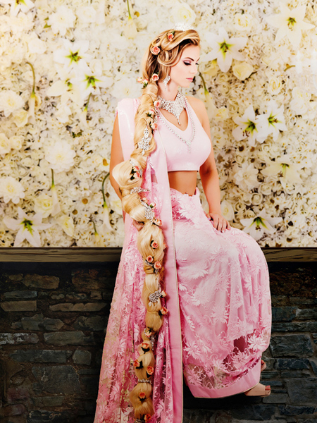 ชุดแต่งงานแบบเจ้าหญิงราพันเซลก็น่าจะเป็นที่ถูกอกถูกใจและตรงตามสไตล์สาวหวานอย่างยิ่ง และดูพิเศษกว่าเจ้าหญิงราพันเซลในนิยายด้วยเสื้อครอป กับกระโปรงยาวในโทนสีชมพูอ่อนลายดอกไม้ตลอดทั้งตัว และหากต้องการจะใส่เครื่องประดับก็ดูไม่เยอะเกินไป ไม่ว่าจะเป็นสร้อยประดับเพชร ดอกไม้กับแฮร์พีชปักผม