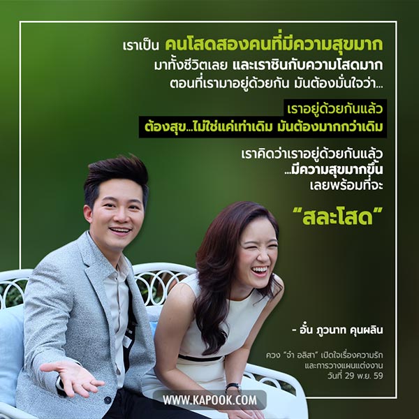 กับคำถามที่มีคนมองว่า แต่งงานกันเพราะธุรกิจหรือเปล่า ทั้งคู่บอกว่าไม่เกี่ยวกัน ต่างคนต่างก็มีธุรกิจและอาชีพของตัวเอง