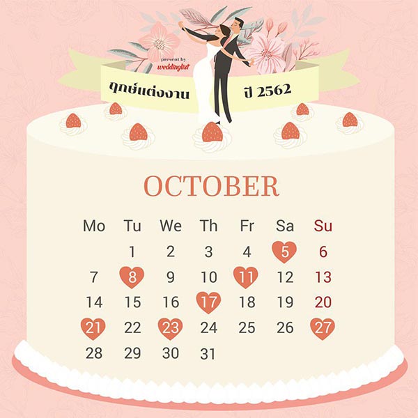 ฤกษ์แต่งงาน ตุลาคม 2562