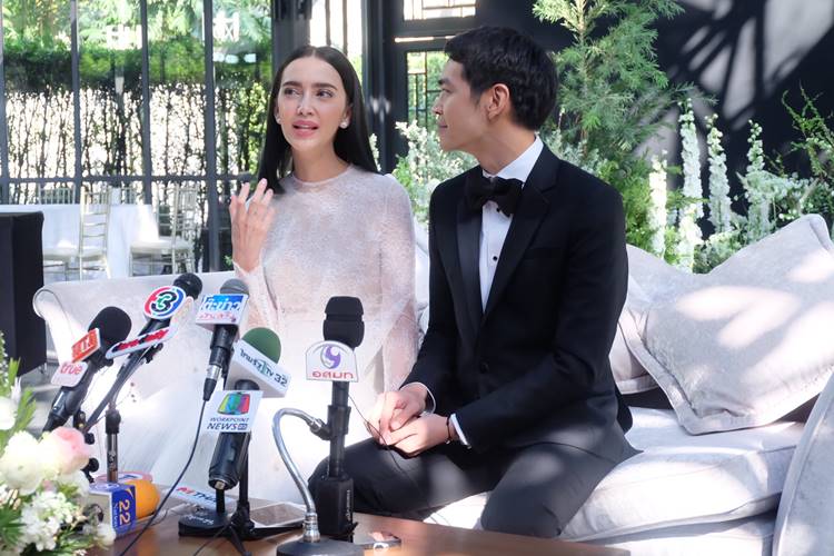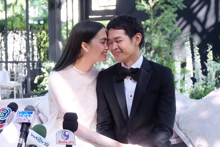 เอ็ม : จริง ๆ เรื่องงานอยากพูดตั้งแต่เมื่อวาน เป็นความภูมิใจมาก เจ้าสาวผมเก่งมาก ภาพที่เห็นเมื่อวานเจ้าสาวเขาช่วยคิดช่วยทำ เราสองคนจะมีคนมาช่วยรันงาน และทำอะไรต่าง ๆ ไม่ได้มีเวดดิ้งแพลนเนอร์ แต่ว่าน้องเขาเห็นอะไรที่ดี เห็นดอกไม้แบบนี้สวย หรือเห็นคนนี้ตกแต่งออกมาดี เขาติดต่อเอง เช่น เรื่องเพลงและวงดนตรี เราก็คุยกันว่าจะเอาวงไหนมาเล่น ซึ่งเราเองสุดท้ายก็ทำทุกอย่างด้วยตัวเองหมดเลย ภาพที่เห็นไม่ว่าจะเป็นด้านหน้า หรือด้านไหน น้องคุยกับทีมงานเอง