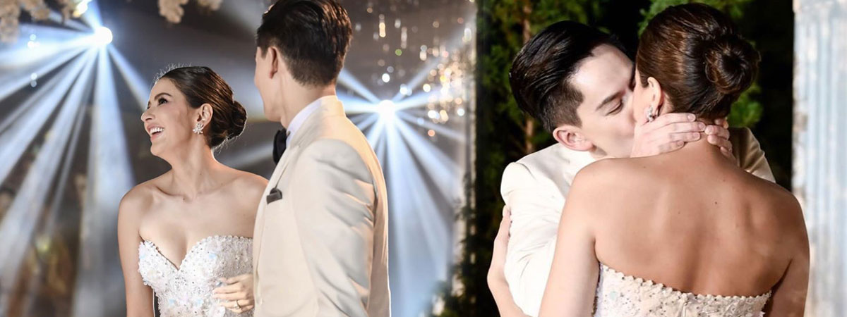 บรรยากาศในงานเป็นไปอย่างชื่นมื่น เปี่ยมไปด้วยความสุขและความรัก โดยคู่บ่าวสาวได้มอบจุมพิตหวานฉ่ำให้แก่กัน ท่ามกลางความยินดีของแขกผู้มีเกียรติที่มาร่วมงาน