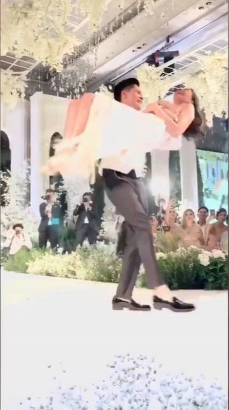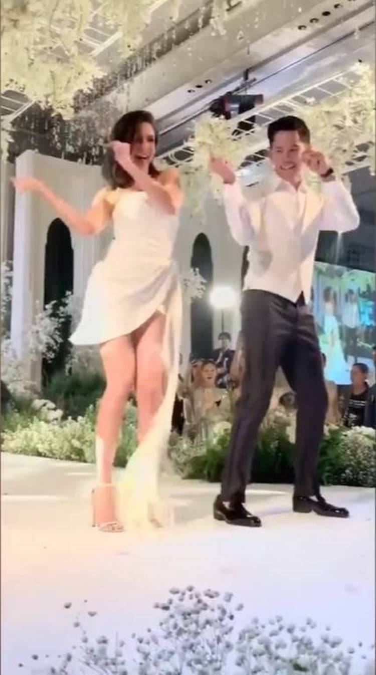 และในงานเลี้ยงอาฟเตอร์ปาร์ตี้นั้น ริต้า และหนุ่มกรณ์ ก็ได้เปลี่ยนเสื้อผ้ามาในลุคที่ขยับแข้งขยับขาได้สบายขึ้น ซึ่งสาวริต้ามาในชุดจากแบรนด์ Oscar de la Renta เพื่อโชว์การเต้น ออกสเต็ปน่ารัก ๆ ที่ขอบอกเลยว่า ตอนจบมีแอบแซ่บ เพราะพอสิ้นเสียงเพลงแล้ว เจ้าบ่าวก็อุ้มเจ้าสาวหมุนคว้างกลางอากาศ ที่ทำเอาเสียงกรี๊ดภายในงานดังสนั่น