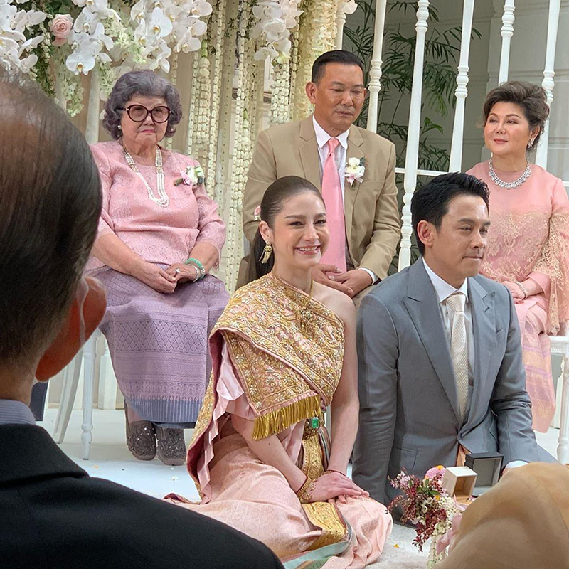 ในงานมีทั้งครอบครัวเครือญาติ เพื่อน ๆ ในวงการบันเทิง และแขกผู้หลักผู้ใหญ่จำนวนมาก ไปร่วมเป็นสักขีพยาน ยินดีปรีดากับความรักหวานชื่นของคู่บ่าวสาว ที่เรียกว่าทั้งสวยและหล่อมาก เหมาะสมกันอย่างที่สุด