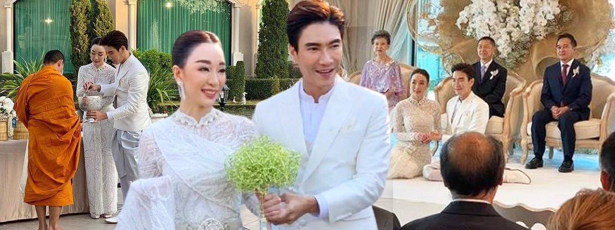 โดยพิธีเพิ่งจัดขึ้นไปอย่างสด ๆ หมาด ๆ ในช่วงเช้าของวันที่ 20 ธันวาคม 2563 บรรยากาศเป็นไปอย่างเรียบหรูและชื่นมื่น ท่ามกลางเพื่อนสนิทและคนใกล้ชิดในครอบครัวที่มาร่วมเป็นสักขีพยานรัก โดยงานนี้แทบจะขนขบวนเหล่าดารามาทั้งช่อง 3 ทั้ง มาร์กี้ ราศรี, กุ๊บกิ๊บ, บี้ ธรรศภาคย์, คิมเบอร์ลี่, มิ้นต์ ชาลิดา, เต้ย จรินทร์พร เป็นต้น