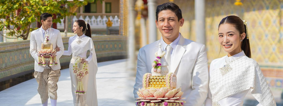 มายด์ ลภัสลัล ควง พาย สุนิษฐ์ ภิรมย์ภักดี เข้าพิธีมงคลสมรส สวมชุดไทยสวยสง่า สมฐานะสะใภ้ตระกูลสิงห์ เริ่มต้นชีวิตคู่ด้วยความมงคล
