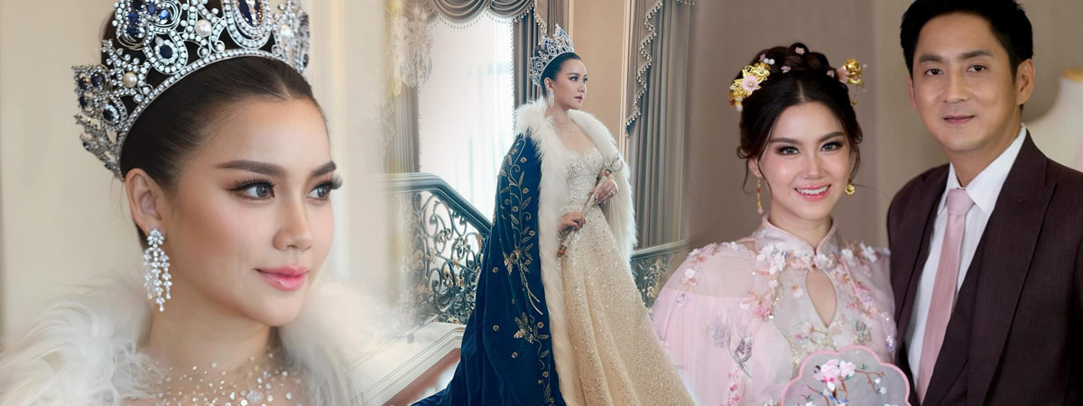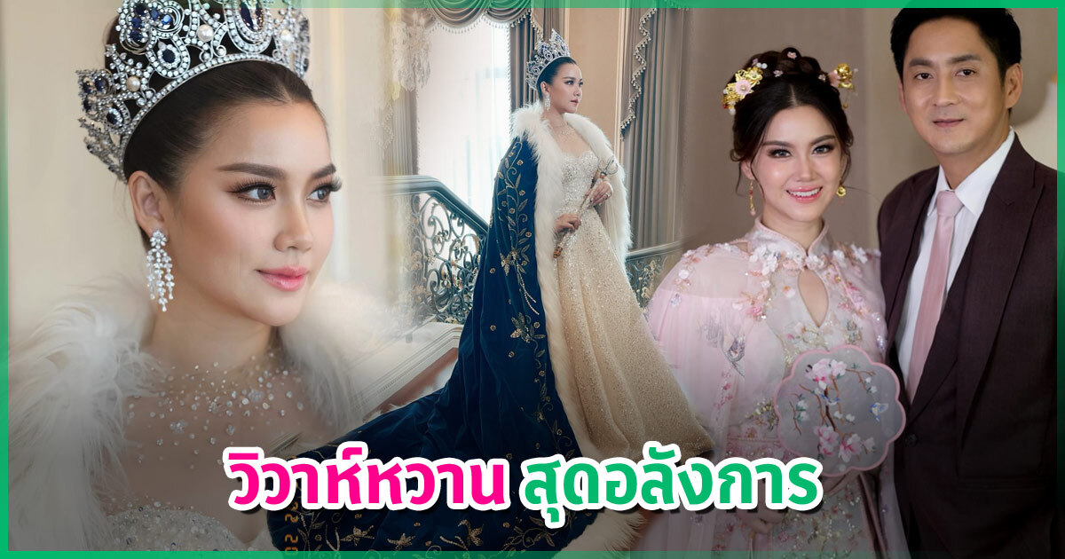 หมิง ชาลิสา เปิดคฤหาสน์หรูจัดงานแต่ง ควง อรรถ วิสุทธิ์ แฟนนักธุรกิจเข้าพิธีวิวาห์ ชุดเจ้าสาวอลังการมาก สวมมงกุฎ ถือคฑา และผ้าคลุมนางสาวไทย